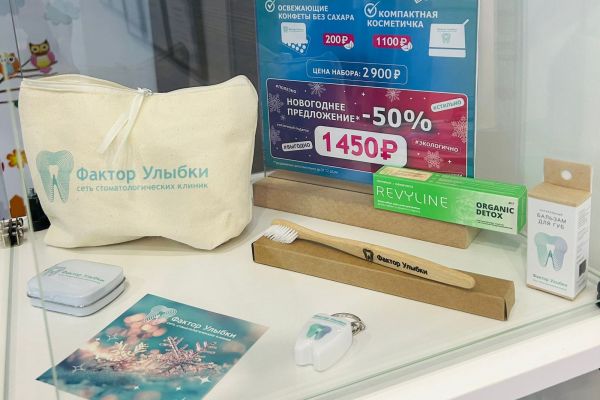 Наша компания выпустила собственный подарочный эко-набор, который включает в себя все самое необходимое для сохранения ослепительной и здоровой улыбки. До 31.12.24 действует скидка -50%! Успейте приобрести достойный подарок для себя и близких в сети наших клиник)